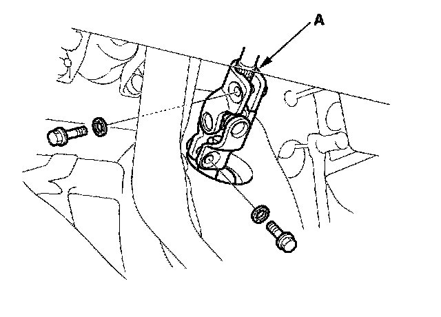 5. Remove the steering joint bolts, and disconnect the steering joint by moving the steering joint (A) toward the column.