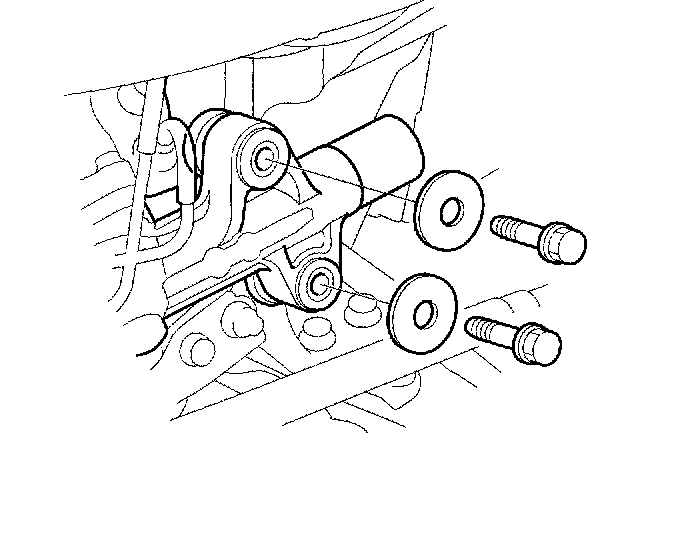 12. Remove the two 10 mm flange bolts and washers from the left side of gearbox.