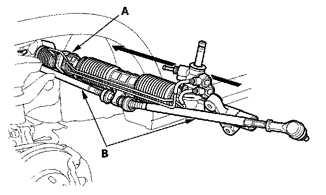 1. Pass the cylinder of the steering gearbox (A) together with the tie-rods (B) through the wheel well opening on the driver's side.