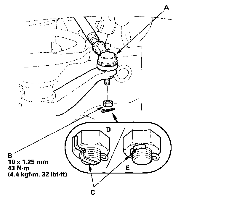 16. Install a new cotter pin (C), and bend it as shown (D) or (E).