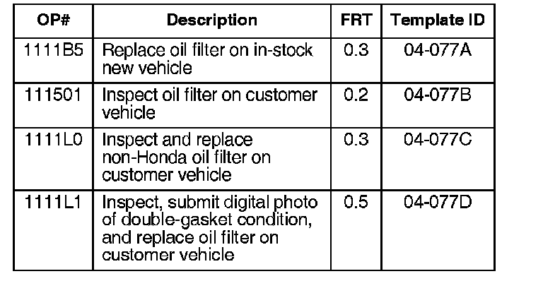 - If your customer does not want the oil filter replaced (unlikely, but possible), document this on the repair order, and let them know you cannot assure the continued reliability of the non-Honda filter.