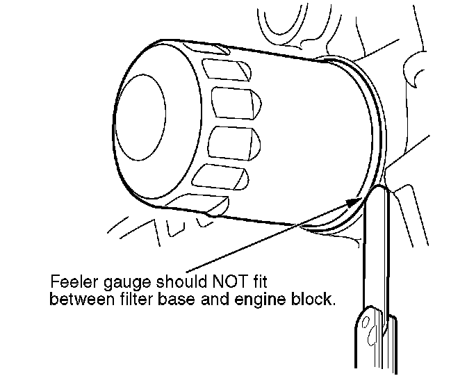 3. Try to insert a 0.25 mm (0.010-inch) feeler gauge between the base of the Honda oil filter and the engine block.