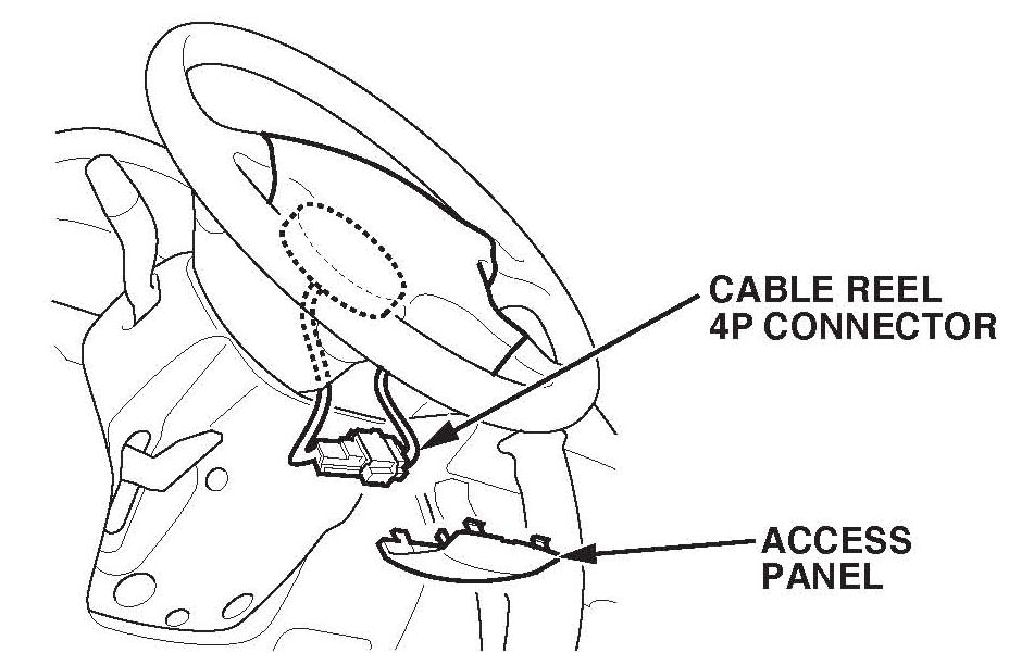 5. Reattach the cable reel 4P connector to the steering wheel, and reinstall the access panel on the steering wheel. Go to step 23.