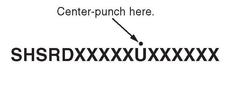 23. Center-punch a completion mark above the 11th character of the engine compartment VIN.