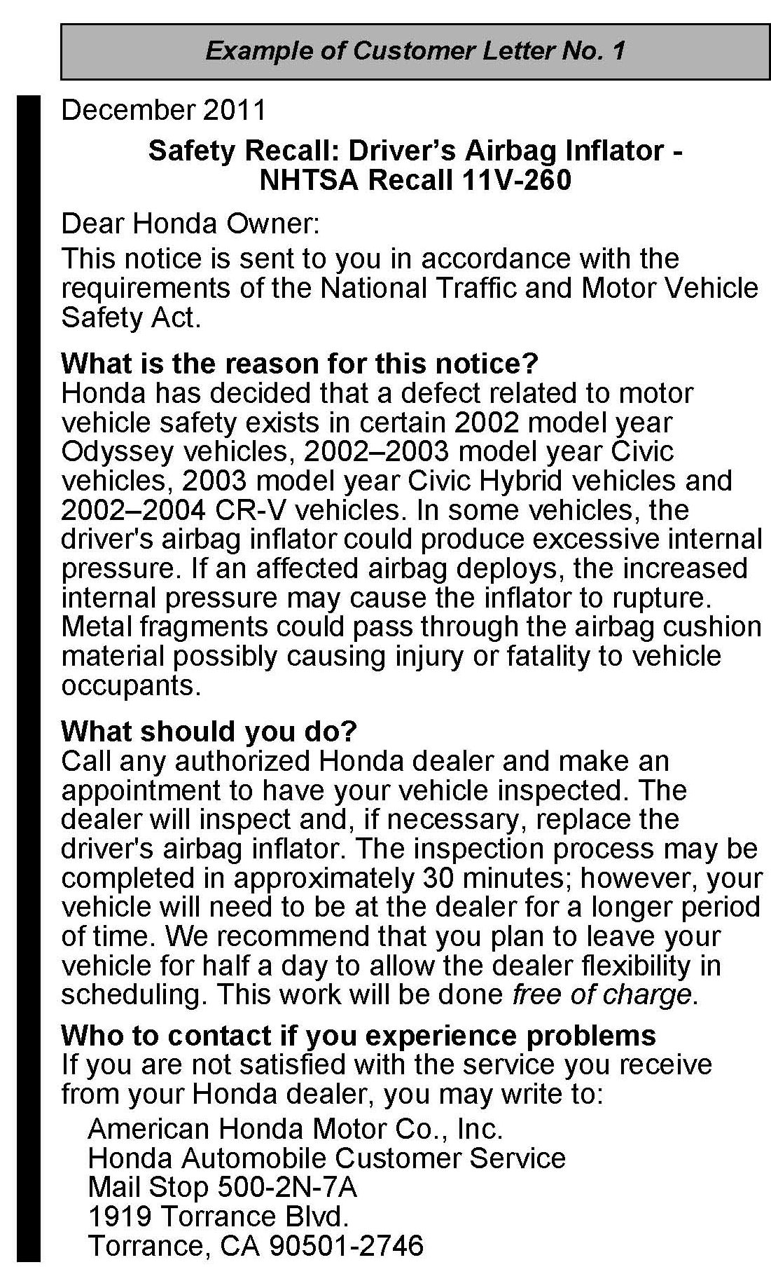 Example of Customer Letter 1