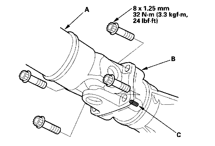14. Install the intermediate shaft cover (C), but do not tighten the bolts.