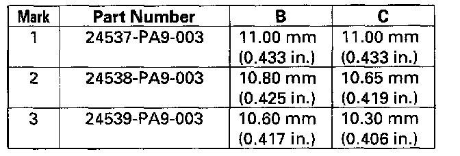3. If the measurement is out of standard, select and install the appropriate park lever stop (A) from the table.
