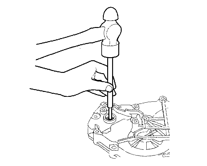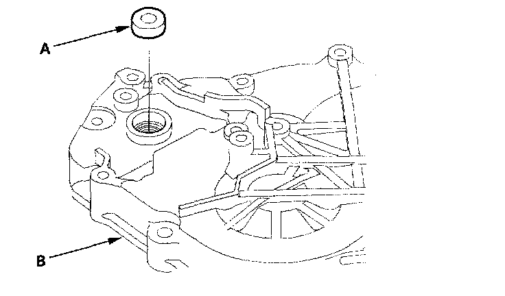 1. Remove the idler gear shaft bearing (A) from the end cover (B) with the special tool.