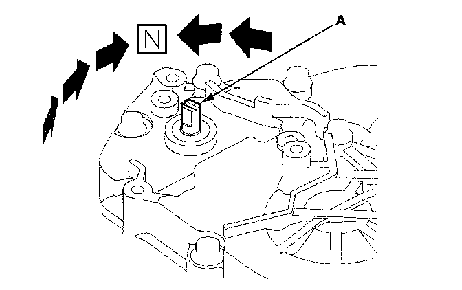 22. Set the control shaft (A) to the [N] position by turning the control lever on the torque converter side.