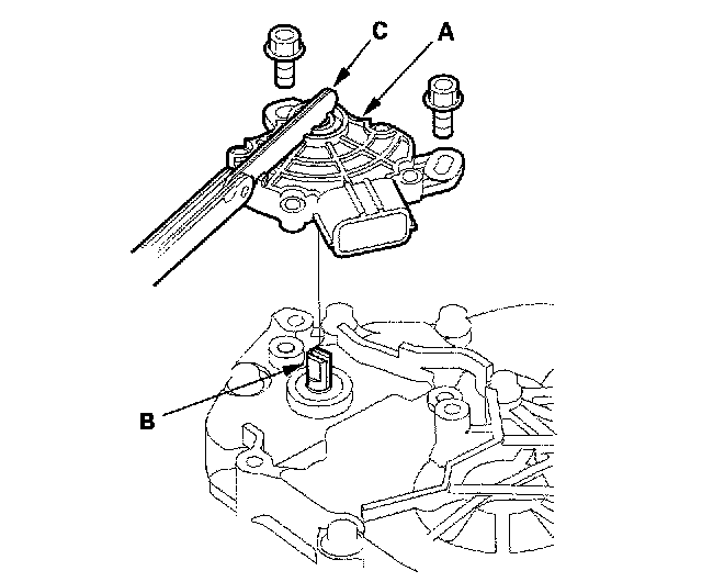 24. Install the transmission range switch (A) gently on the control shaft (B) while holding the N position with the 2.0 mm (0.08 inch) blade (C).