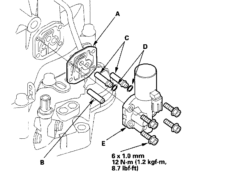 2. Install the new O-ring (E) over the ATF feed pipe.