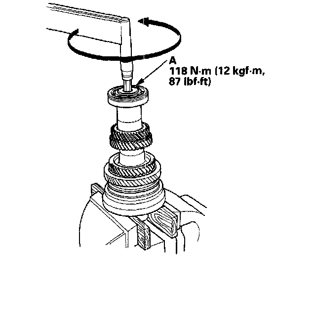 12. Install 4th gear (A) using the special tool and a press (B). Do not exceed the maximum pressure.