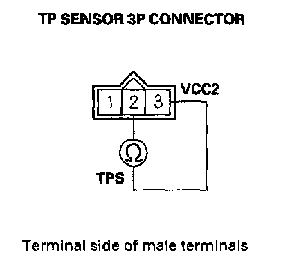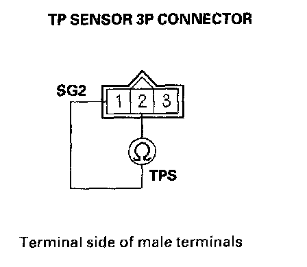 13. On the sensor side, measure resistance between TP sensor 3P connector terminals No.2 and No.3 with the throttle fully closed.