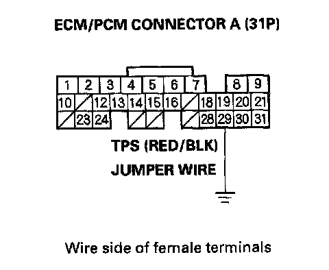 17. Connect ECM/PCM connector terminal A29 to body ground with a jumper wire.