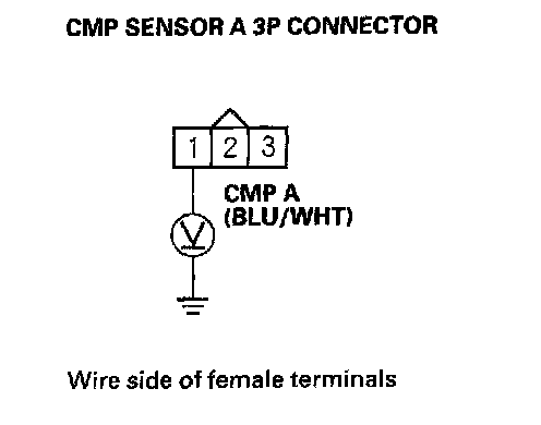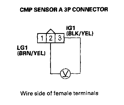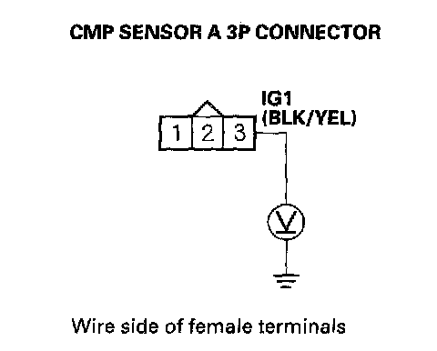 10. Measure voltage between CMP Sensor A 3P connector terminals No.2 and No.3.