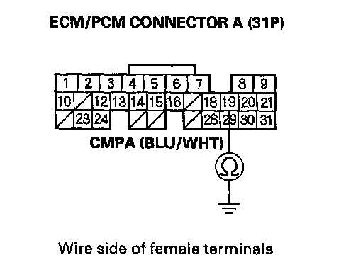 15. Check for continuity between ECM/PCM connector terminal A19 and body ground.