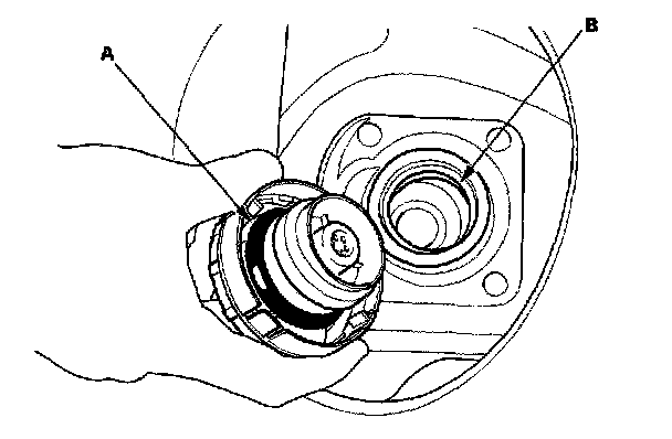 2. Check the fuel fill cap seal (A) and the fuel fill pipe mating surface (B).