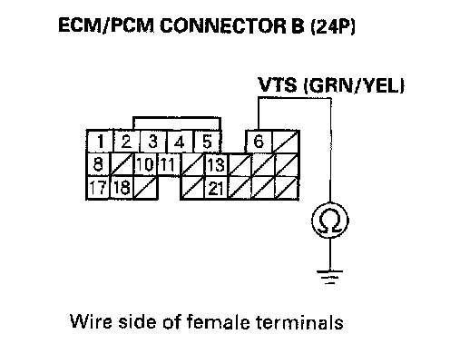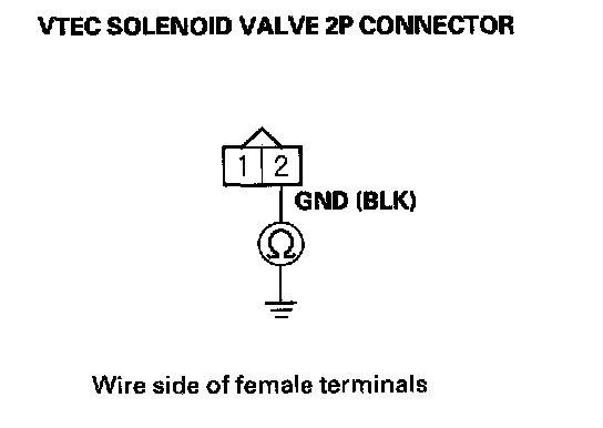 8. Check for continuity between VTEC solenoid valve terminal No.2 and body ground.