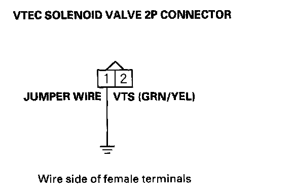 11. Connect VTEC solenoid valve 2P connector terminal No.1 to body ground with a jumper wire.