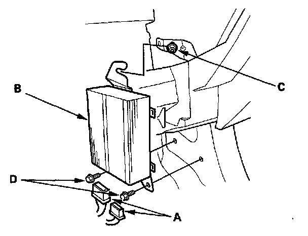 3. Loosen the mounting nut (C), and remove the two mounting bolts (D), then remove the stereo amplifier.
