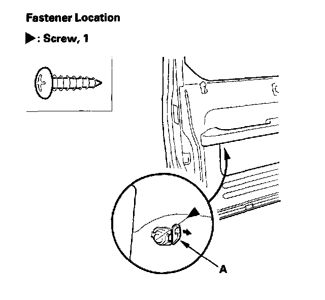 4. From under the armrest, using the appropriate tool from the KTC trim tool set, pry out the lid (A), and remove the screw.