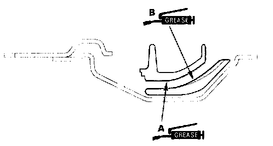 5. Install the receivers in the reverse order of removal, and apply multipurpose grease to the upper receiver surface (A) and lower receiver surface (B) as indicated by the arrows.