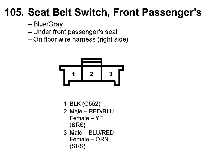 105. Seat Belt Switch, Front Passenger's: