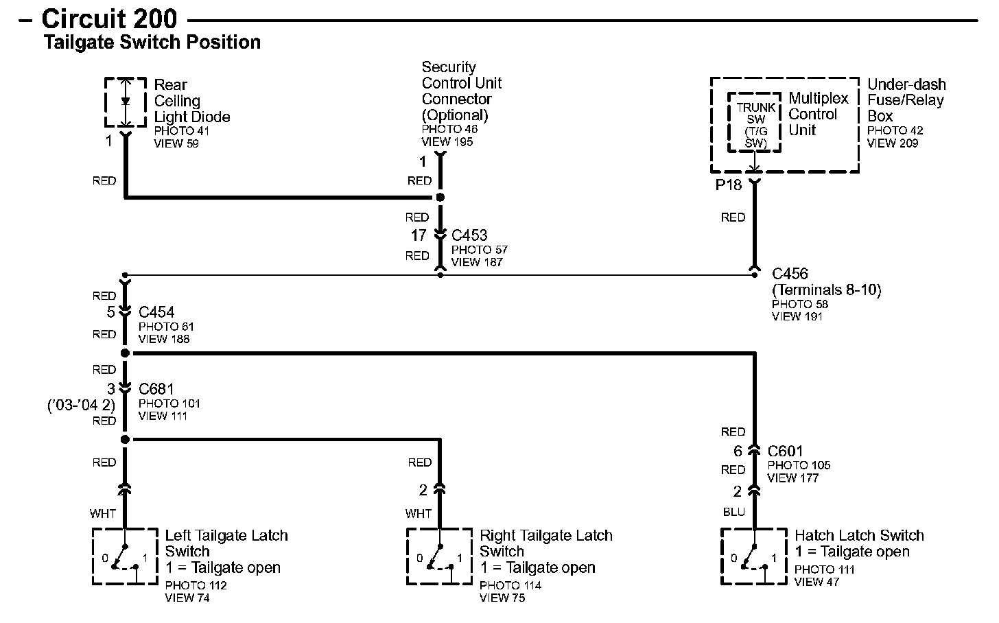 Circuit 200 Tailgate Switch Position: