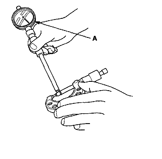 5. Repeat for all rocker arms and both shafts. If the clearance is over the limit, replace the rocker shaft and all over tolerance rocker arms. If any VTEC rocker arm needs replacement, replace the rocker arms (primary and secondary), as a set.