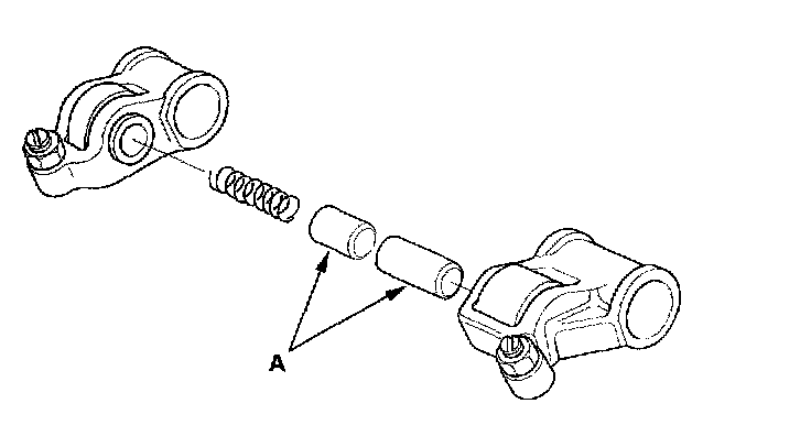 6. Inspect the rocker arm pistons (A). Push each piston manually. If it does not move smoothly, replace the rocker arm as set.