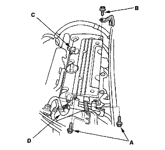 9. Tighten the bolt (C) securing the power steering hose bracket.