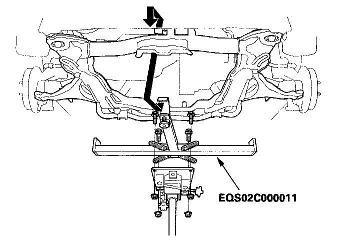 5. Loosely install the new subframe mounting bolts. Remove the special tool.