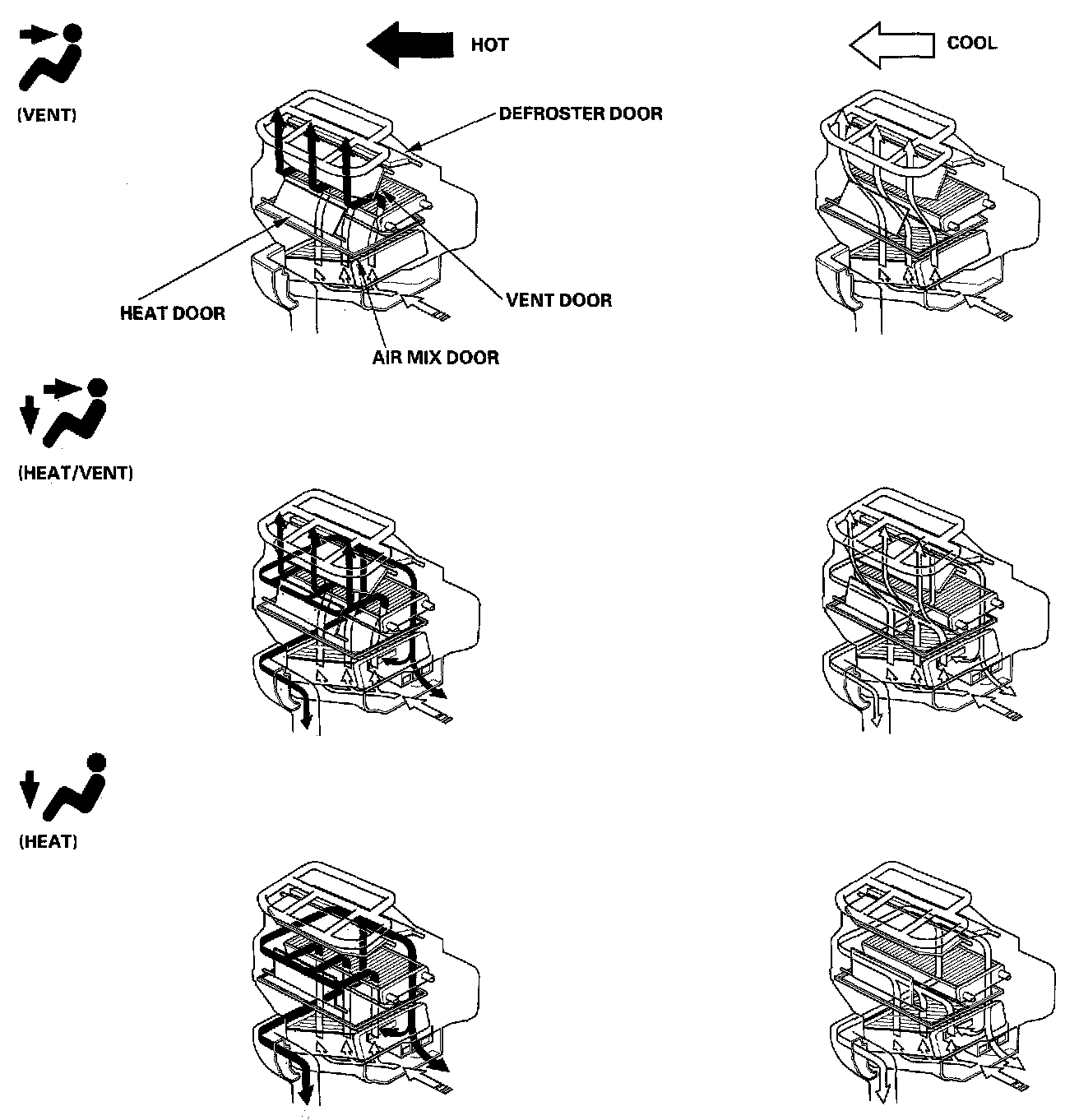 The air conditioning system removes heat from the passenger compartment by circulating refrigerant through the system as shown.