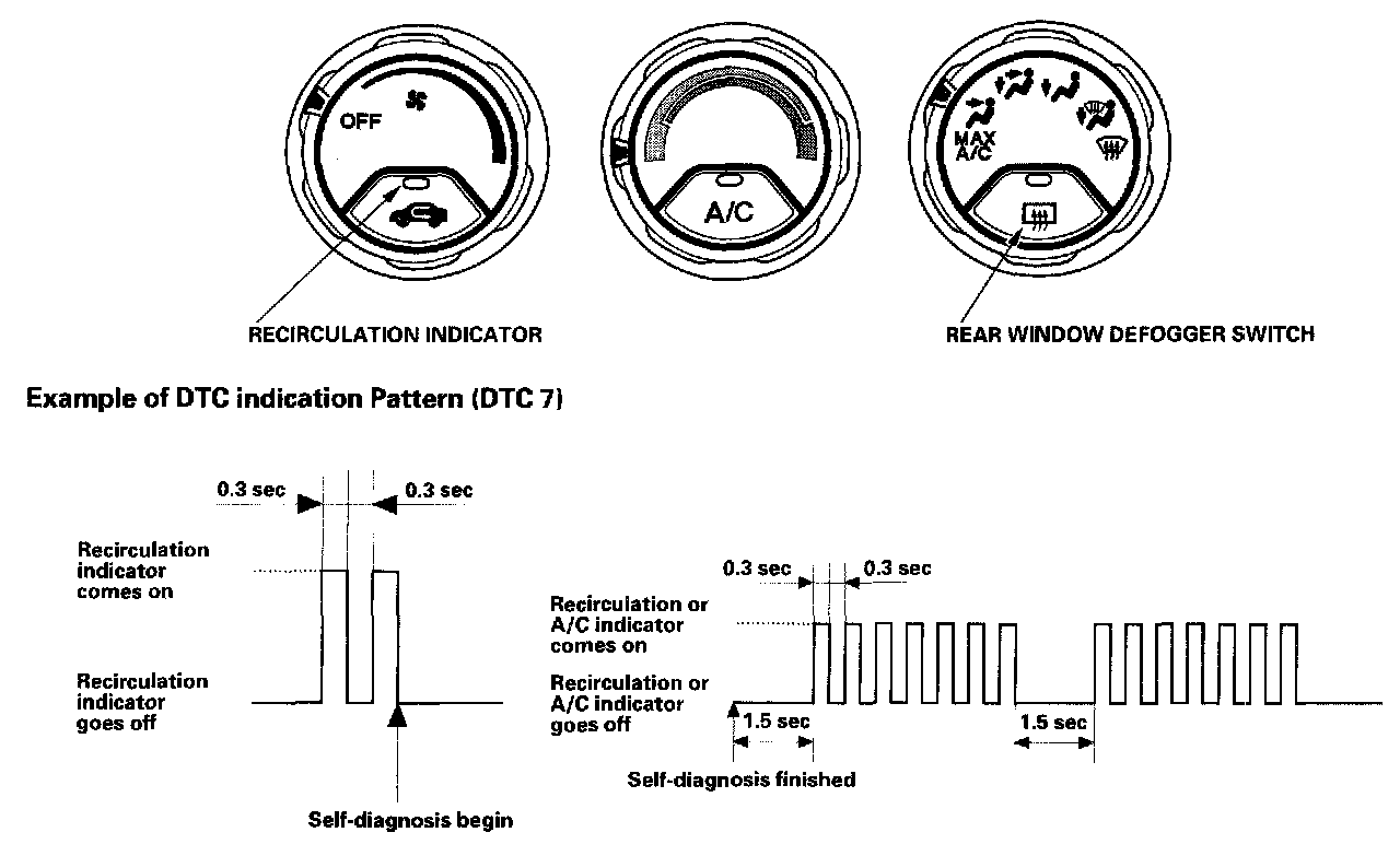 - If there is any problem in the system after self-diagnosis is finished, the recirculation indicator will blink the Diagnostic Trouble Code (DTC) 7 through 15.