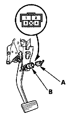 2. Disconnect the 4P connector (A) from the brake pedal position switch (B).