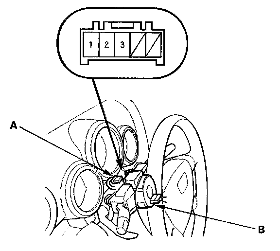 4. Reconnect the dashboard wire harness B 5P connector (A), and disconnect the horn switch positive 1P connector (B).