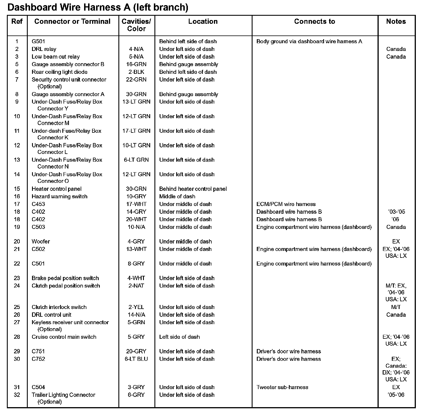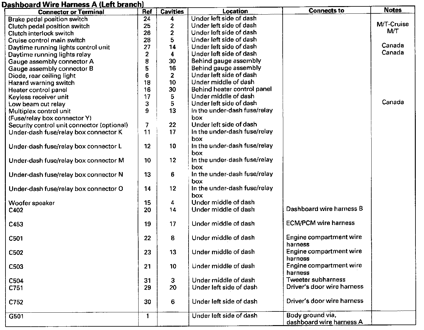 Dashboard Wire Harness A (left Branch):