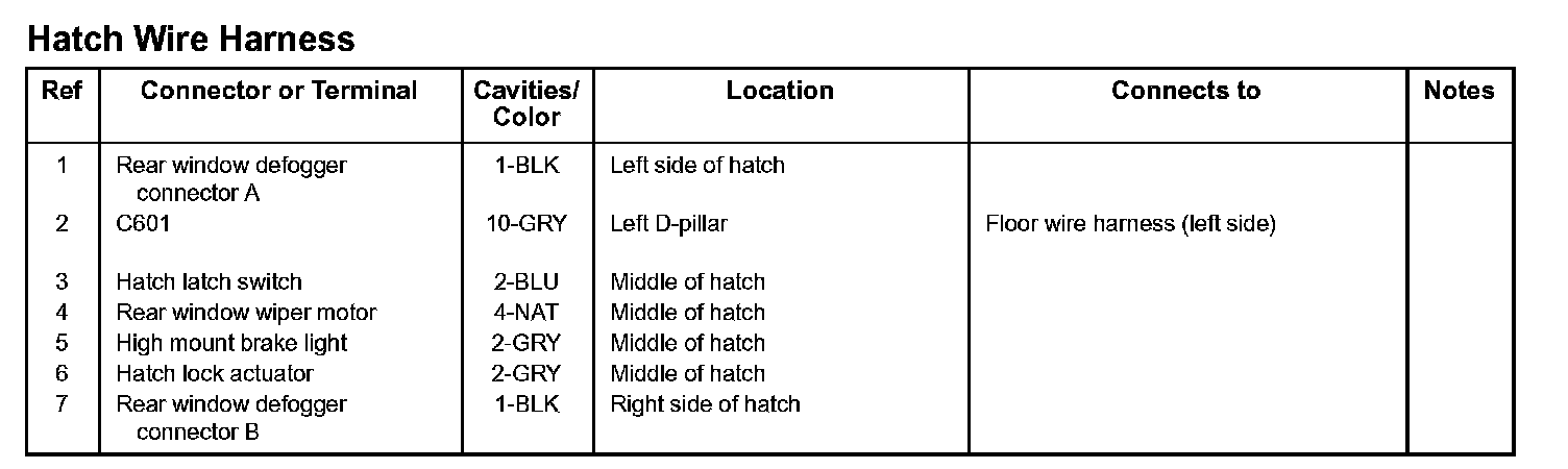 Hatch Wire Harness: