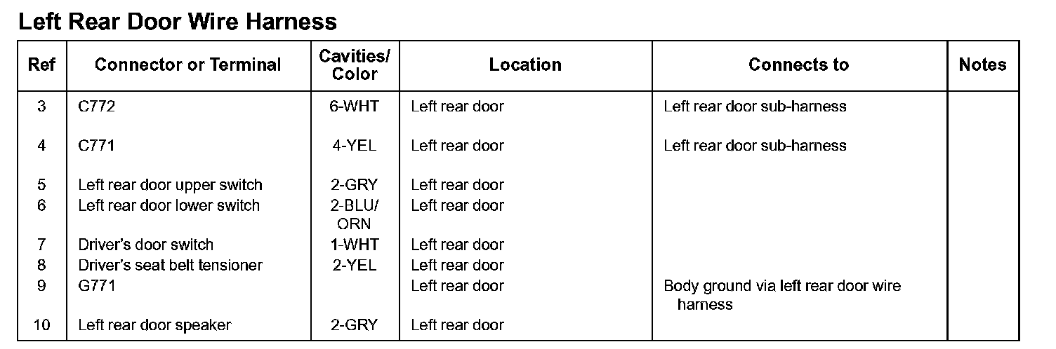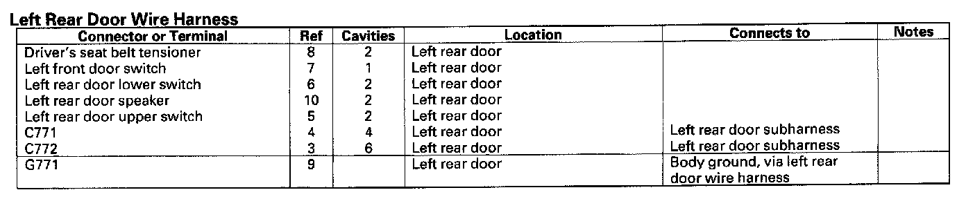 Left Rear Door Wire Harness: