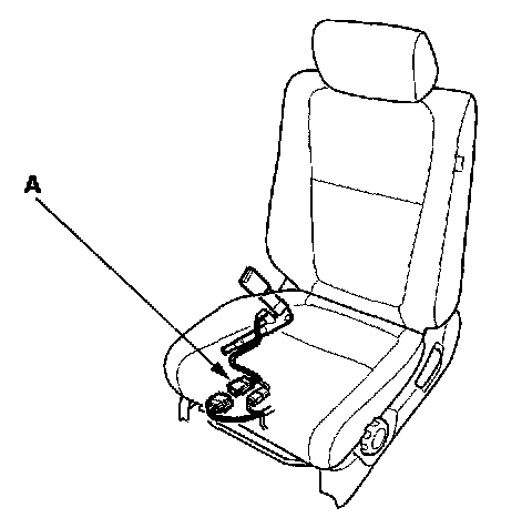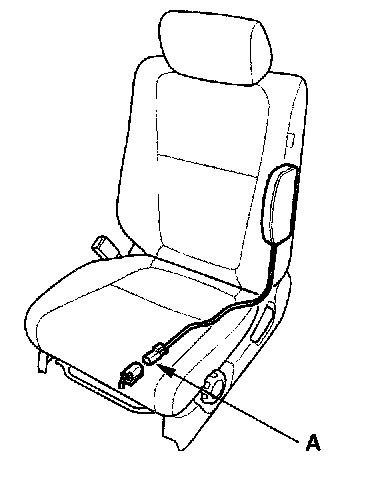 4. Disconnect the side airbag 2P connector (A) from the floor wire harness.