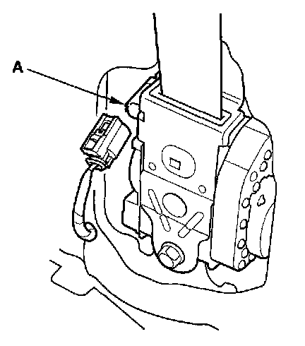 6. Disconnect the seat belt buckle tensioner 4P connector (A).