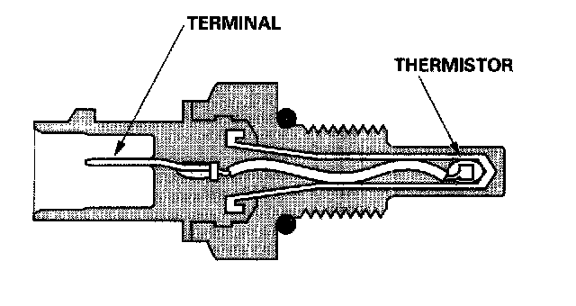 The ECT sensor is a temperature dependent resistor (thermistor). The resistance of the thermistor decreases as the engine coolant temperature increases.