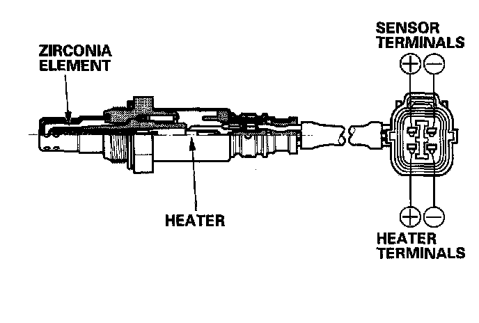 The A/F Sensor operates over a wide air/fuel range. The A/F Sensor is installed upstream of the TWC, and sends signals to the ECM/PCM which varies the duration of fuel injection accordingly.