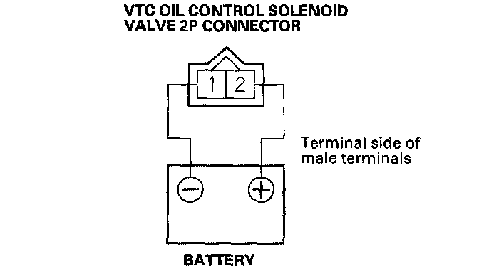 5. Connect the battery positive terminal to VTC oil control solenoid valve 2P connector terminal No.2.