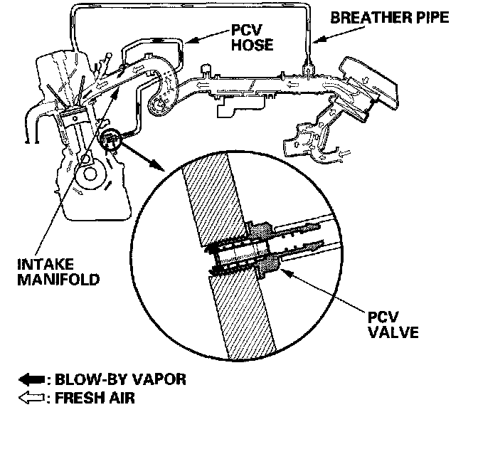 The PCV valve prevents blow-by gasses from escaping into the atmosphere by venting them into the intake manifold.