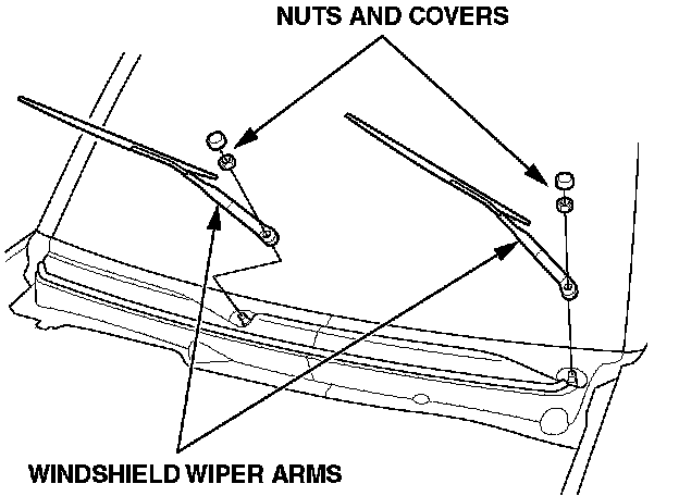 7. Install the windshield wiper arms. Torque the nuts to 18 Nm (13 lb-ft).