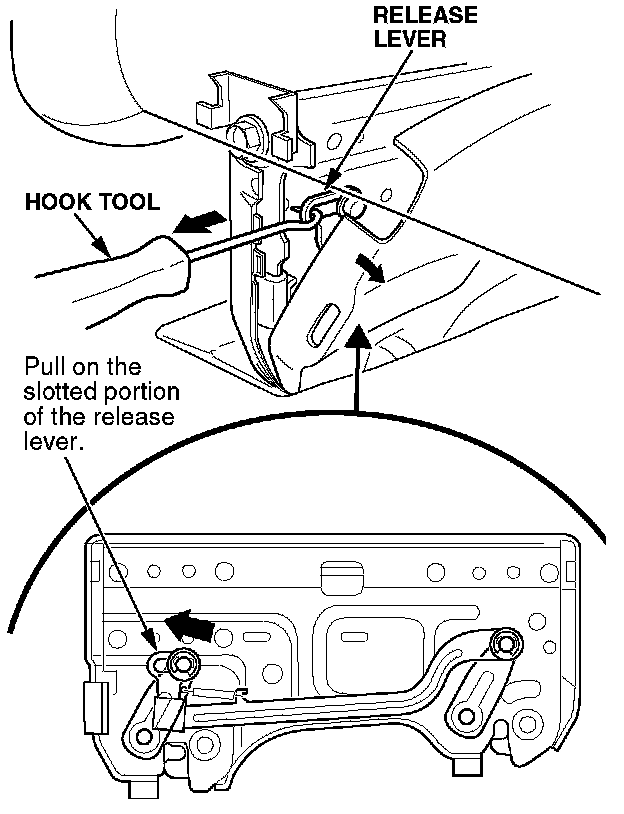 4. Use a hook tool to pull the release lever inside the seat support, and detach the support from the floor.