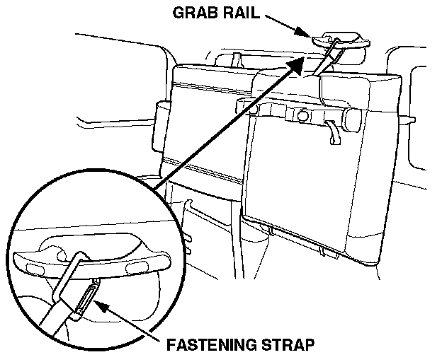 5. Pivot the seat toward the side window, and hook its fastening strap to the grab rail.