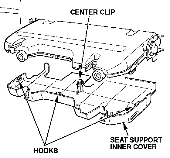 8. Remove the seat support inner cover by releasing the three hooks and detaching the center clips.