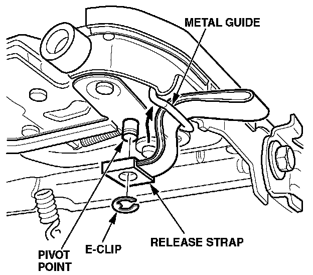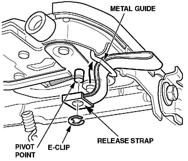 8. Feed a new release strap through the metal guide, and attach its plastic retainer to the pivot point with the E-clip.